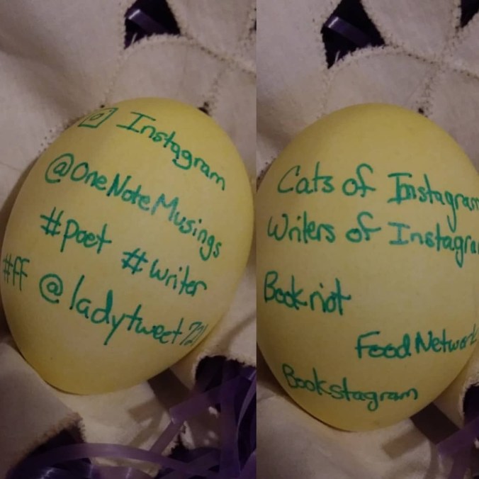 #eastereggmarketing close up 2- #Instagram egg! shouting out @onenotemusings a fellow #writer, and some of my favorite things to follow. See if you’re #tagged? #HappyEaster with hashtag Easter eggs!
