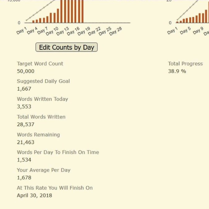 #campnano #progress update, only a wee bit late… I’ve been busy #editing my butt off, running full steam up hill one day, then sitting still the next. #trusttheprocess tho, because I know the #goals, I am #writing and love it. I also am on a small #vacation, just a long weekend really, but I will be burning through all the forgotten bits, like my previously promised #update. 28,500+ #words is no joke, more than halfway there! I almost have a finished #book! #author dreams, with assistance from #nanowrimo and #writersofinstagram and of course my #campnanowrimo cabin mates!