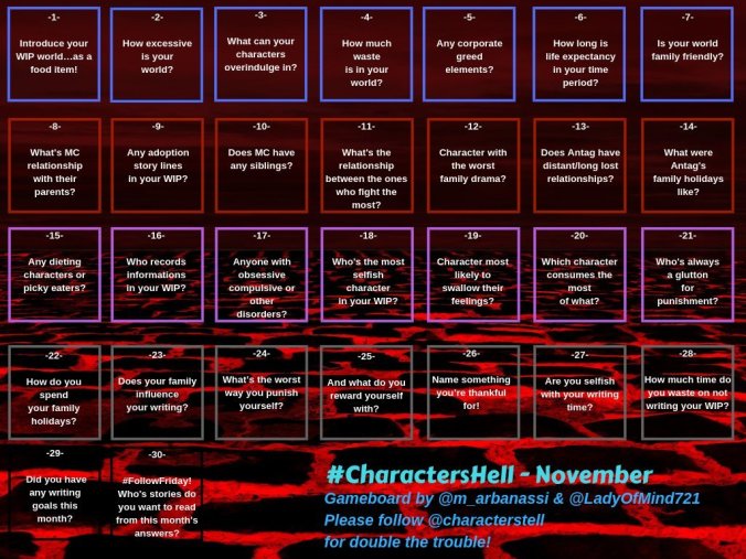 New #CharactersHell board! Gluttony and Family for November. Hope you join our little Twitter game… Share this: Click to share on X (Opens in new window) X Click to share on Facebook (Opens in new window) Facebook Like Loading... Related October 29, 2018September 15, 2019 / LadyofMind / Leave a comment