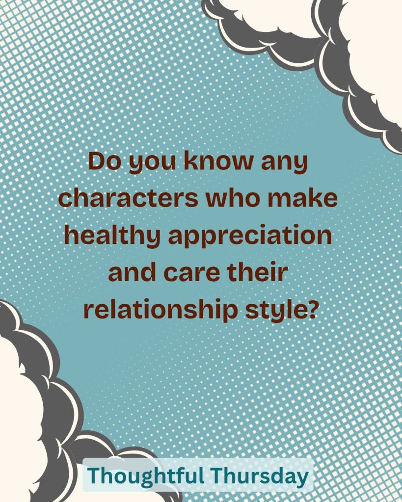 So yeah, know any characters like that? Healthy appreciation and care? Because I could use a good read, or watch recommendation…